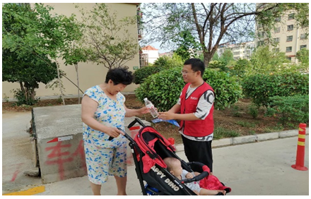 實踐活動最后,為助力文明城市建設(shè),服務(wù)隊員們走進(jìn)社區(qū)開展了走訪慰問、垃圾清理、向路過老人發(fā)放飲用水等。隊員們一邊和老人們交流談心,一邊清掃地面。干凈的街角,老人誠摯的謝意,讓隊員們感受到了勞動的快樂。