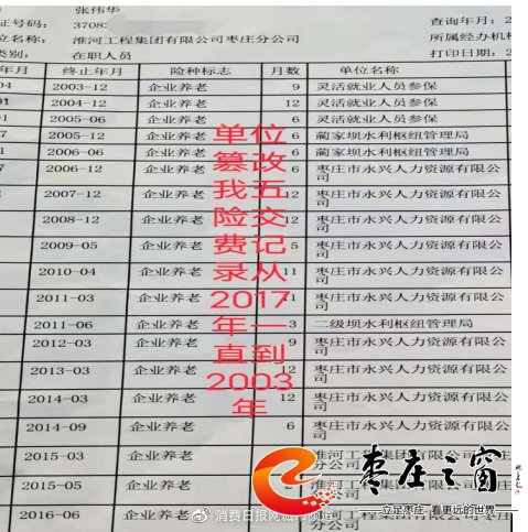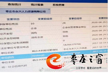2017年10月17日張偉華的社保由國有全資韓莊水利樞紐管理局變更為棗莊市永興人力資源有限公司。讓張偉華不能理解的是自己怎么從國有全資的國有公司變更到民營公司。
