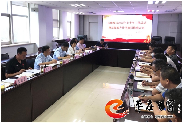 7月22日上午,棗莊市體育局召開2022年上半年工作總結暨思想能力作風建設推進會議,聽取6個重點工作專班上半年工作進展及加強思想能力作風建設、“五比五看”活動開展情況,安排部署下半年工作。