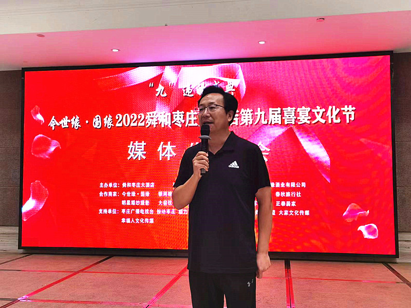 9月12日下午,由舜和棗莊大酒店主辦,棗莊市婚慶慶典協(xié)會(huì)、江蘇今世緣酒業(yè)有限公司協(xié)辦的”“九”違的盛典——今世緣·國(guó)緣 2022舜和棗莊大酒店第九屆喜宴文化節(jié)媒體發(fā)布會(huì)在舜和棗莊大酒店隆重舉行。