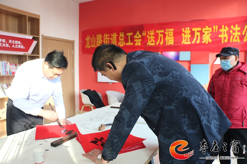 “給大家送‘福’啦!”伴隨著新年的祝福,龍山路街道總工會的工作人員們正將書法家們寫好的一張張福字雙手遞給在場的職工。1月16日上午,市中區(qū)龍山路街道總工會在公勝街紅色驛站組織開展“送萬福 進萬家”書法公益活動,邀請省書法家協(xié)會的4位書法家代表,在活動現(xiàn)場手寫福字和對聯(lián),為廣大職工群眾以及轄區(qū)企業(yè)送去新春的祝福和問候。